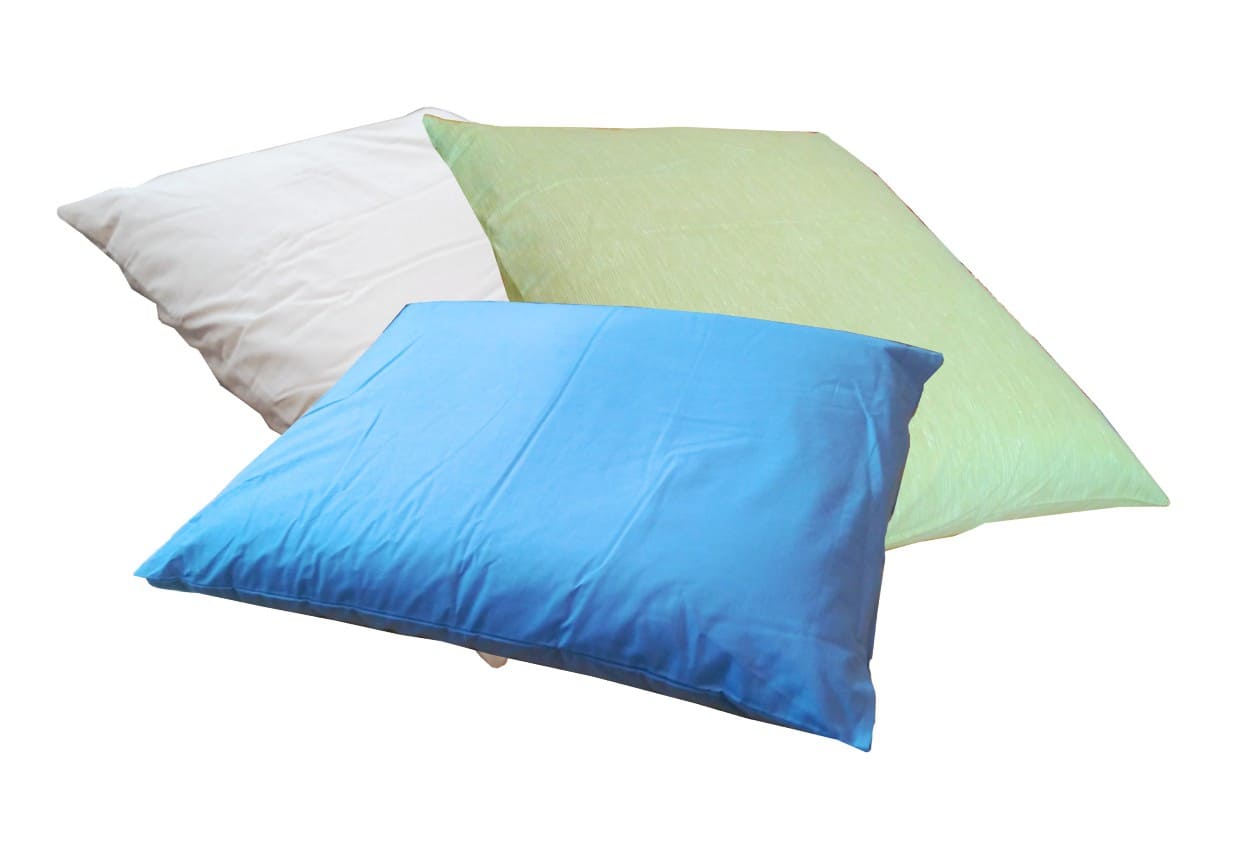 Materiał zewnętrzny: mocna i gruba tkanina w 100% bawełniana. Materiał bardzo gęsto tkany o gramaturze powyżej 250g/m2 . Poduszka została dodatkowo przeszyta w celu wzmocnienia tkaniny. Dostępny w całej palecie żywych, naturalnie barwionych kolorów